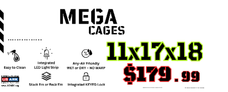 MEGA Cages aren't just the same ole' PVC enclosure, well they are exactly that and SO MUCH MORE! PVC is a great material for cages due to its water tolerance, ease of cleaning, insulation coefficient.